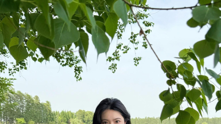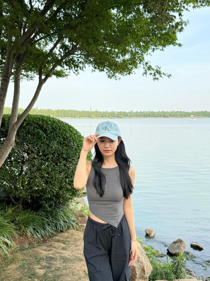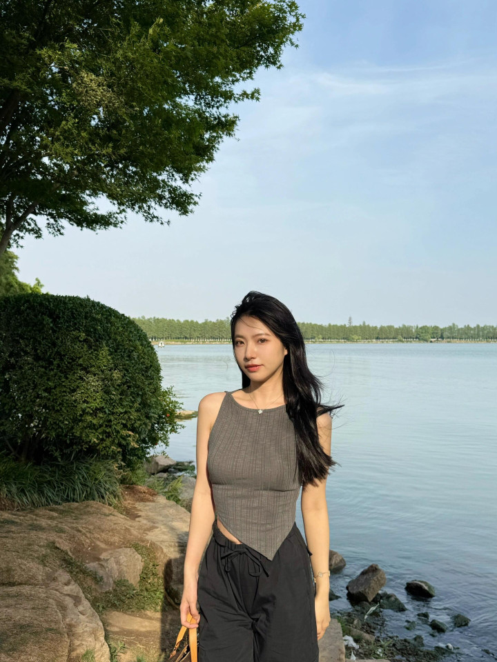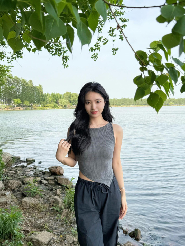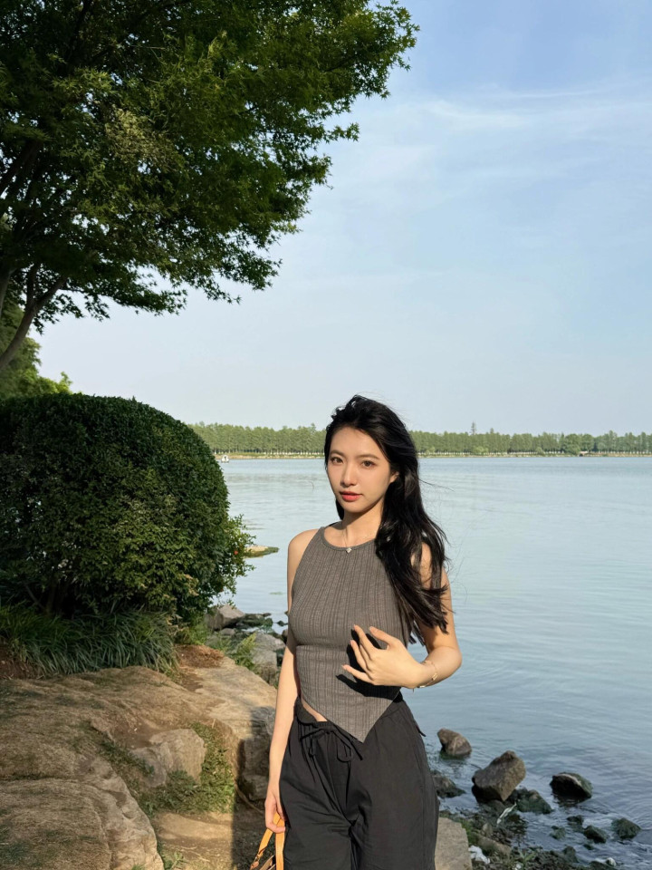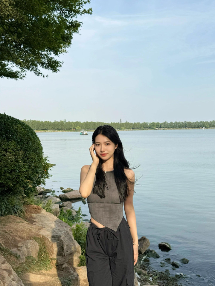 跟小姨来湖边拍照